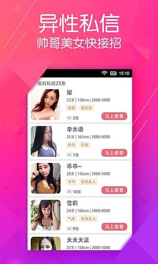 1、精準(zhǔn)匹配:采用先進(jìn)的算法,根據(jù)用戶的個人信息、興趣愛好、生活習(xí)慣等進(jìn)行精準(zhǔn)匹配,輕松找到最合適的人。