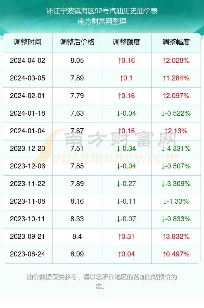 本文旨在為廣大車主提供關(guān)于寧波地區(qū)92號(hào)汽油的最新價(jià)格動(dòng)態(tài),深入分析油價(jià)波動(dòng)的原因及影響因素,并預(yù)測(cè)未來(lái)可能的趨勢(shì),以下是詳細(xì)內(nèi)容: