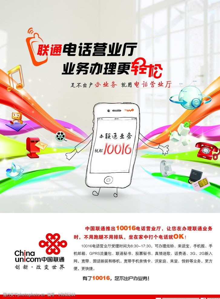 這張海報設(shè)計獨特,色彩明亮且充滿活力,背景展現(xiàn)的是廣袤的自然風(fēng)光,藍天白云、青山綠水,仿佛在向我們招手,海報中心的對聯(lián)“聯(lián)通你我,暢游天下”寓意深遠,意味著通過聯(lián)通,我們可以輕松暢游世界,領(lǐng)略各地的自然美景。