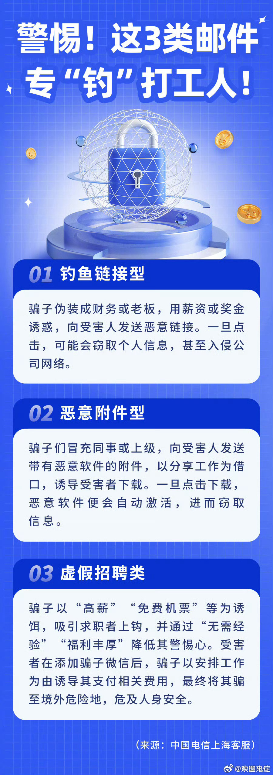 1、學會識別常見的釣魚郵件和短信特征。